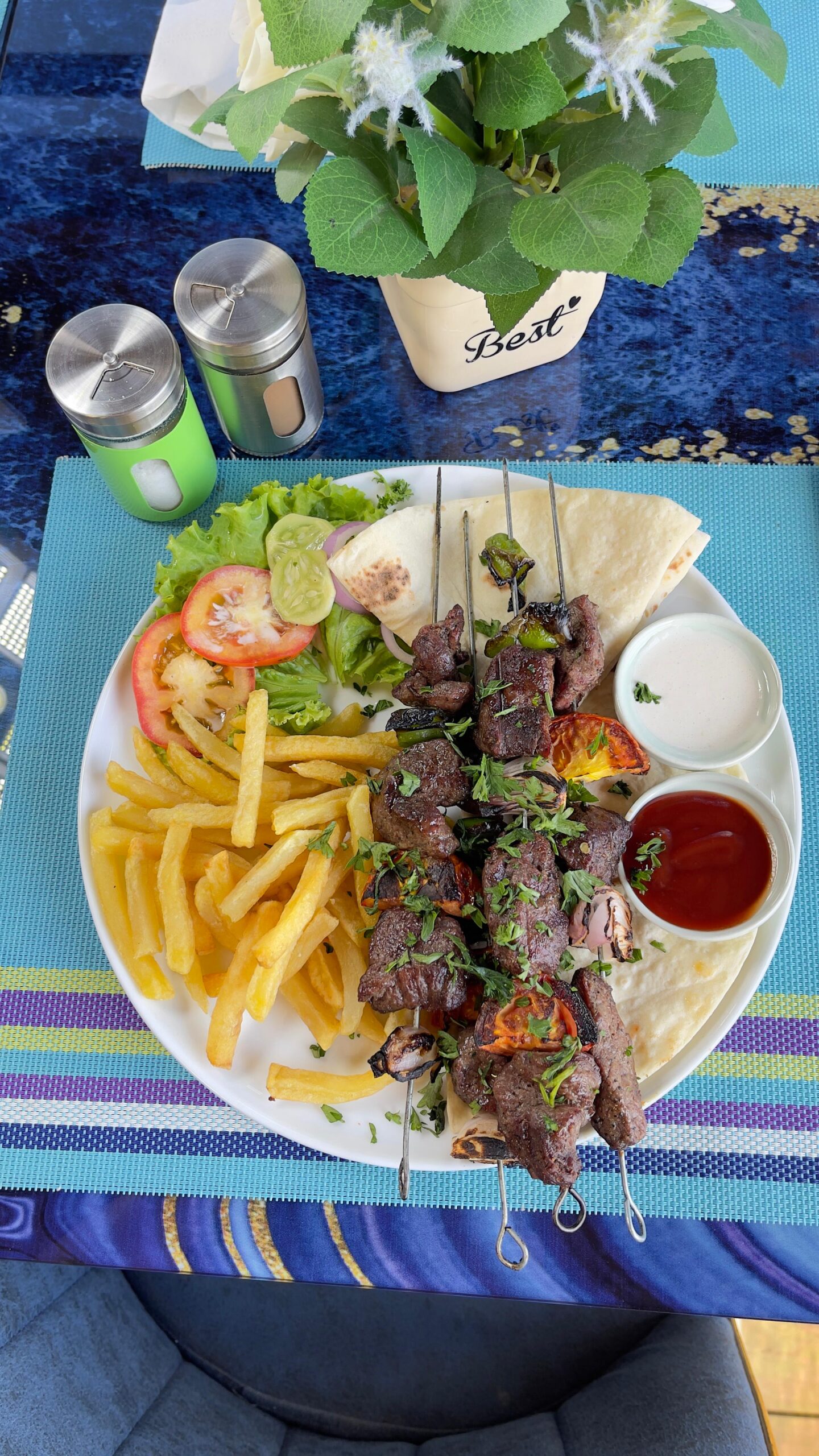 Brouchet viande Leave a Comment / By Admin / mai 31, 2025 Brochettes de mouton grillées avec sauce tahini « Nos brochettes de viande – agneau mariné 24h dans nos épices secrètes et grillé à perfection » Price: 28,000 Ar Vous aimerez peut-être aussi Repas Mutabbal Repas Falafel avec Pita Mouton demi