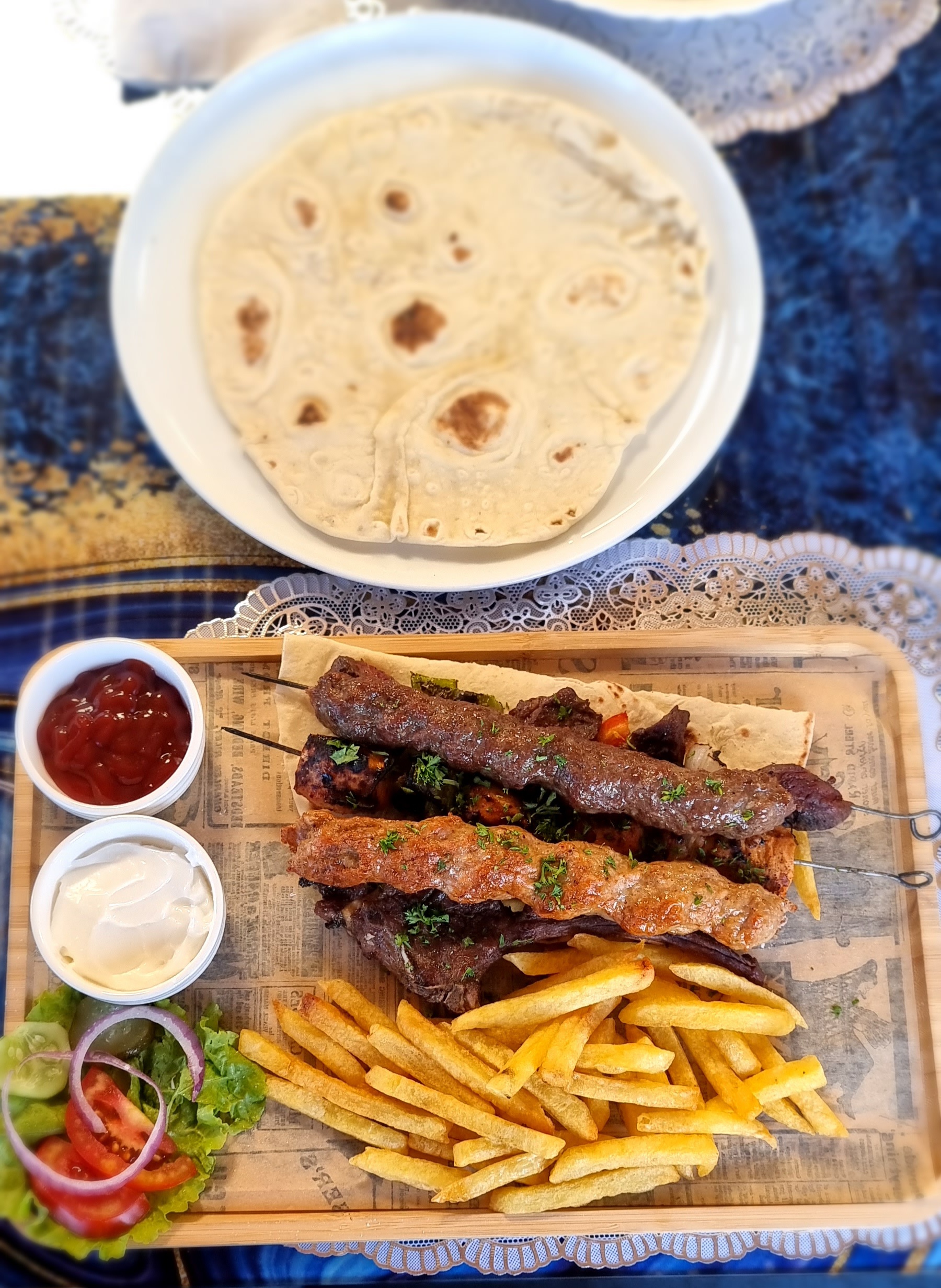 Mix grillades Leave a Comment / By Admin / mai 31, 2025 Mix de grillades accompagné shish tawook , kebab viande et poulet , cote de mouton , brochette viande . « Notre Mix Grillade – une sélection de viandes premium grillées à la perfection pour les amateurs de grillades » Price: 40,000 Ar Vous aimerez peut-être aussi Repas Houmous Kebab viande Mouton entire