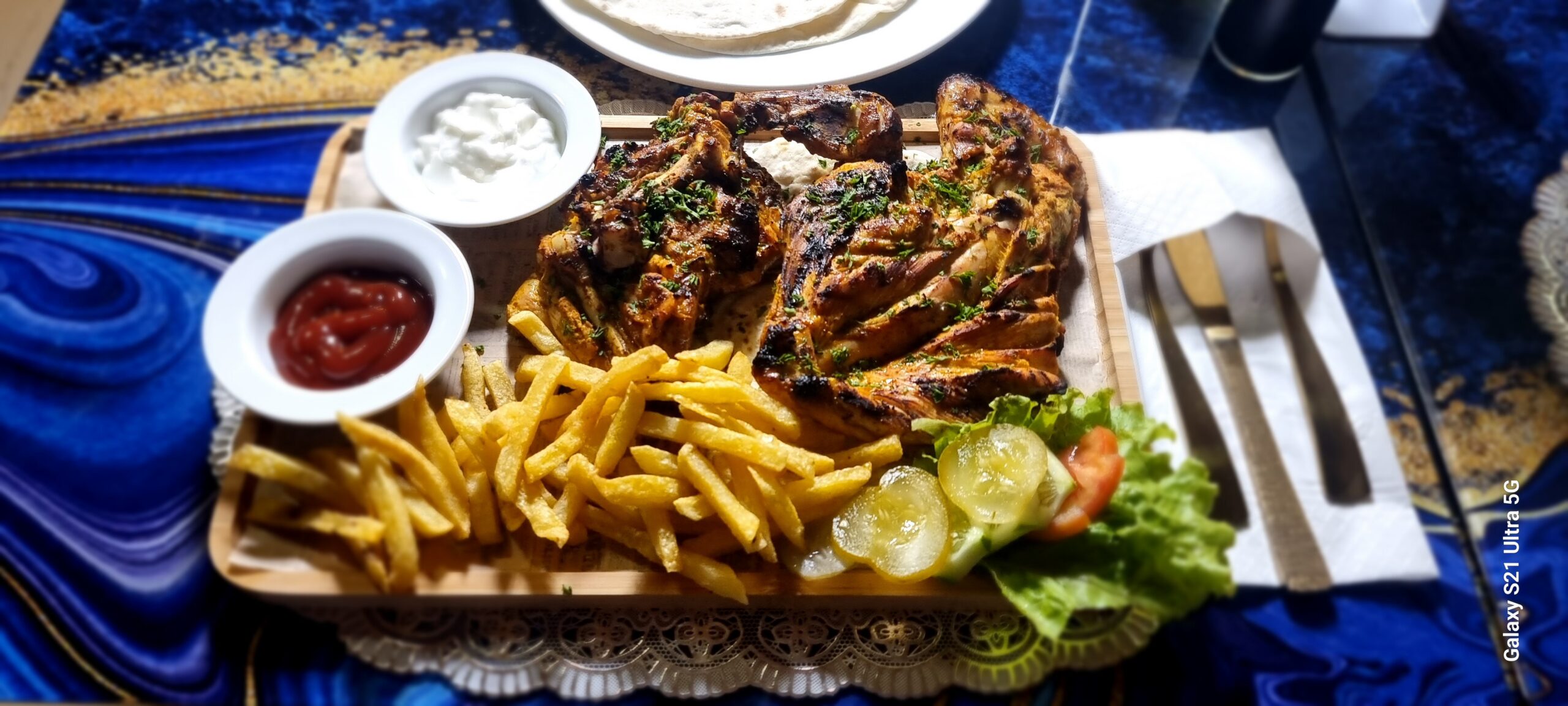 Half Grilled Chicken Leave a Comment / By Admin / May 31, 2025 Half of a whole chicken marinated and grilled to perfection, featuring crispy skin and juicy, tender meat. “Our grilled half chicken – 12h secret marinade for tender meat and crispy skin” Price: 38,000 Ar You might also like Chicken Kebab Beef Shawarma Meal Hummus Meal